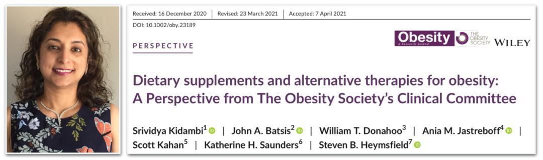 [5]Kidambi S,Batsis JA,Donahoo WT,Jastreboff AM,Kahan S,Saunders KH,Heymsfield SB.Dietary supplements and alternative therapies for obesity:A Perspective from The Obesity Society's Clinical Committee.Obesity(Silver Spring).2021 Jul;29(7):1095-1098.doi:10.1002/oby.23189.PMID:34159756.