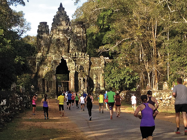 《古墓丽影》中的安吉丽娜·朱莉在吴哥窟塔布隆寺的树下捡起一朵茉莉花,随后掉入了地下宫殿开始一路奔跑的惊险旅程。如果想像她一样以别致的方式去探索千年王朝的神秘与未知,也许参加马拉松是个好主意。跑者在清晨时出发,欣赏完小吴哥寺前莲花池畔壮美的日出后,便踏上绿荫环绕的古寺巡礼之旅。比赛的收益将全部用来捐助柬埔寨战争受害者和支持艾滋防治项目。值得一提的是,自2014年开始,吴哥窟马拉松在原本的半马上增加了全马项目,这意味着线路将贯穿整个遗址的大部分景点。