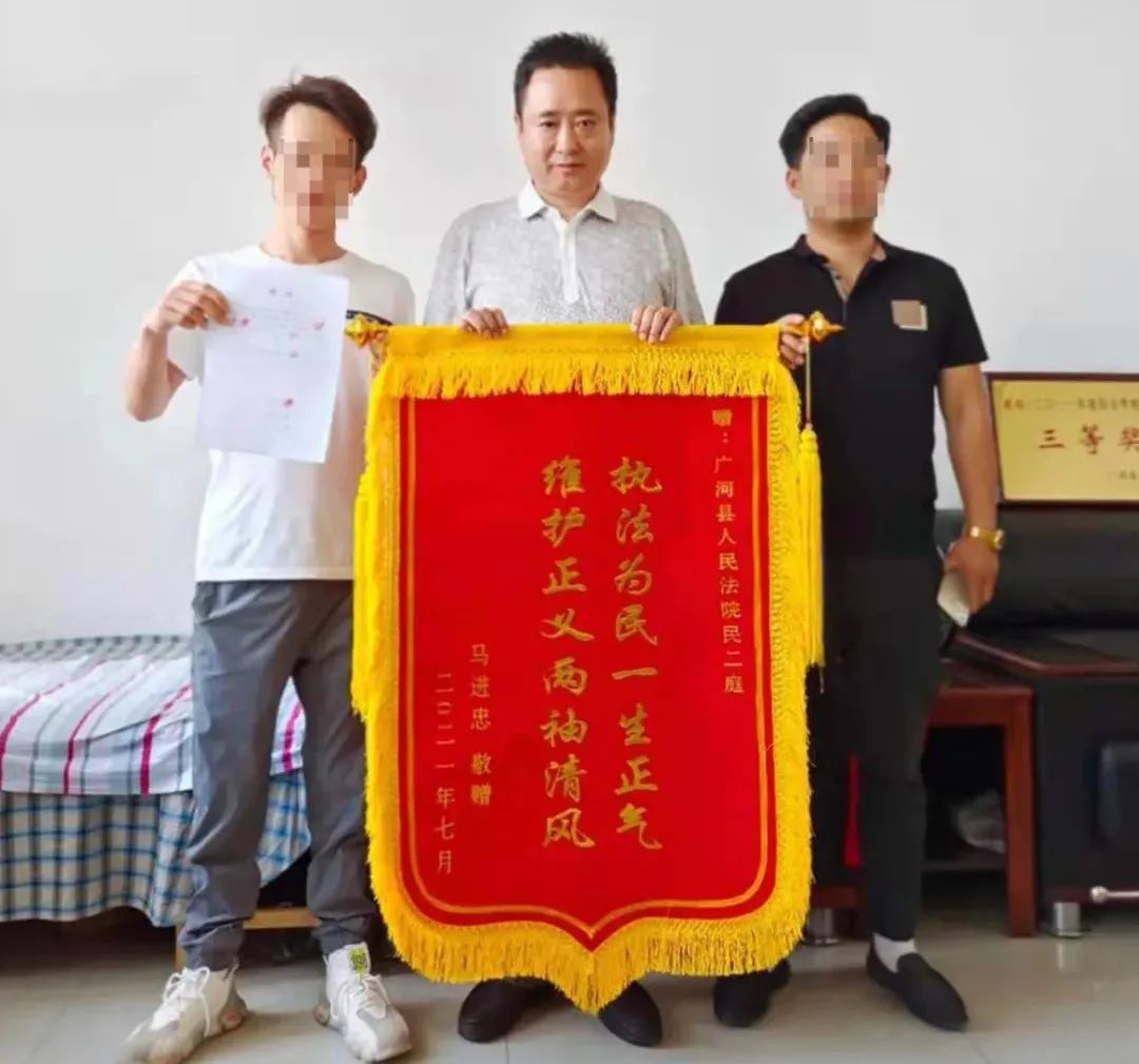 7月5日,当事人马某某将一面印有“执法为民一身正气、维护正义两袖清风”的锦旗送到了广河县人民法院法官马彪的手中,以此表达对法官公正高效办案的诚挚谢意。