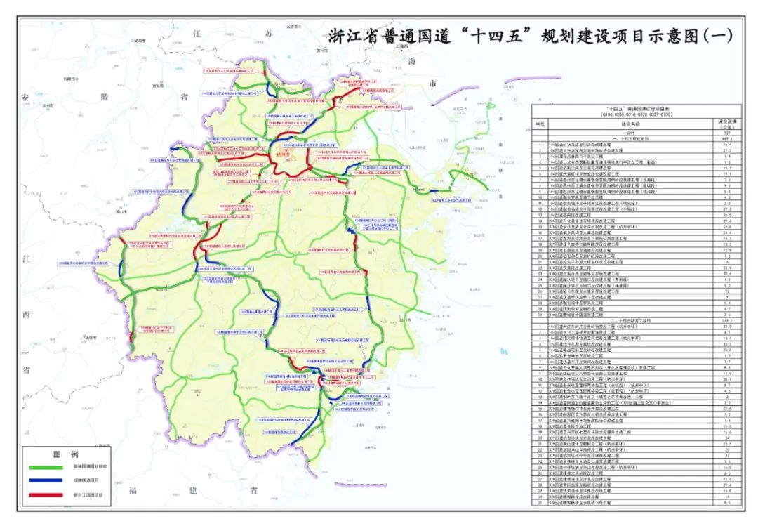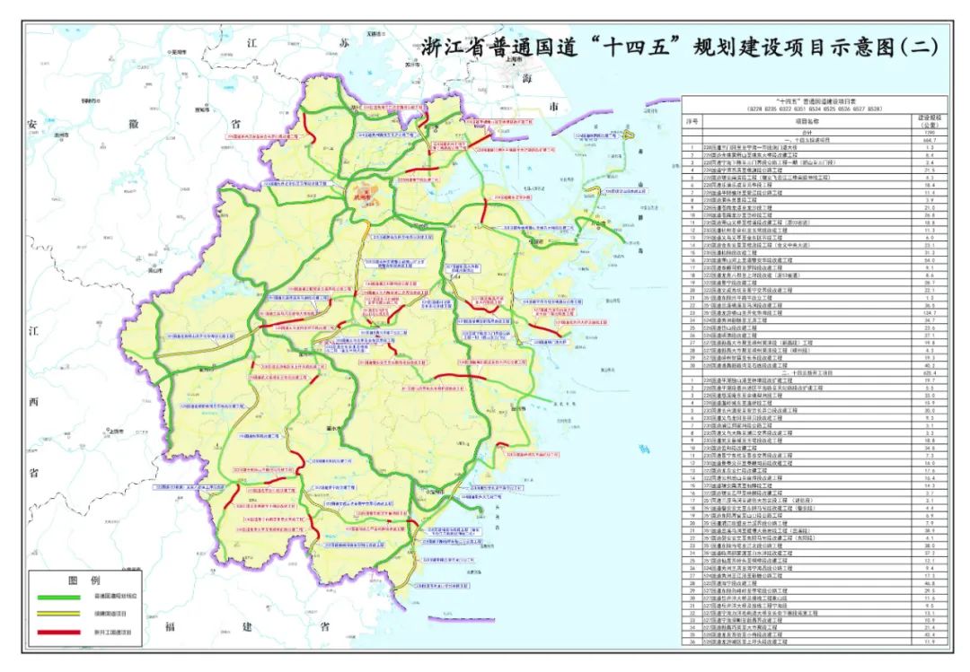 浙江普通国道续建和开工里程约2000公里,建成里程约1600公里,完成投资约2000亿元。国道一级公路比例由“十三五”末的53%提升到70%,二级以上公路比例由“十三五”末的88%提升到96%。到2025年,普通国道总里程约4700公里,省际接口达到17个。