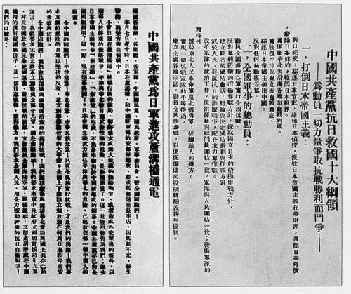 1937年7月7日,日军制造卢沟桥事变,中国驻军第二十九军奋起抗战。中国爆发了全国规模的民族抗日战争。7月8日,中共中央发表通电,号召“全中国人民、政府和军队团结起来,筑成民族统一战线的坚固的长城,抵抗日寇的侵略!”7月9日,红军请缨开赴华北抗日。15日,向国民党中央送交了《中国共产党为公布国共合作宣言》。23日,毛泽东发表《反对日本进攻的方针、办法和前途》一文,号召实行全面的全民族的抗战,反对妥协退让和片面抗战。8月2日,周恩来在彭德怀陪同下,由山西省经石家庄到达保定抗日前线,会见国民党高级将领程潜,看望守卫保定的原杨虎城部赵寿山第十七师官兵,在漕河车站接见该师营以上干部,鼓励官兵“巩固西安事变成果,坚持长期抗战”。8月中旬,国共两党谈判达成协议,将红军改组为国民革命军第八路军(后改称第十八集团军),朱德任总司令,彭德怀任副总司令,下辖第一一五师、第一二O师、第一二九师,随后从陕甘宁边区开赴华北抗日前线。8月下旬,中共中央公布《抗日救国十大纲领》,号召动员千百万群众进入抗日民族统一战线。9月22日,国民党中央通讯社发表《中国共产党为公布国共合作宣言》。第二天,蒋介石在庐山发表承认共产党合法地位和国共合作抗日的谈话。至此,抗日民族统一战线正式形成。
