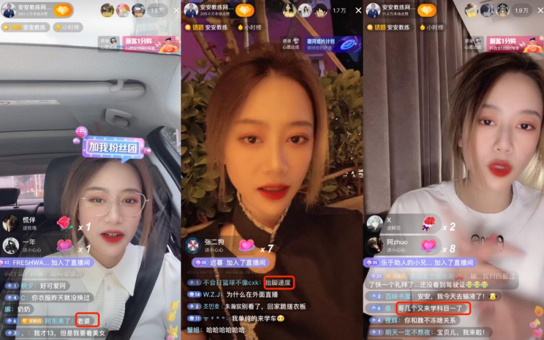 与此同时,最先火起来的驾考直播,在一些正常进行授课的女教练直播间,充斥着“换人、换衣服”的评论,甚至有女教练因年纪和衣着普通遭到谩骂,在直播间擦眼泪。另有一些已经跟风的女主播,在直播间掀开裙子露了丝袜,但收获的是“谁都替代不了安安”“抬脚也给你刷礼物”等评论。