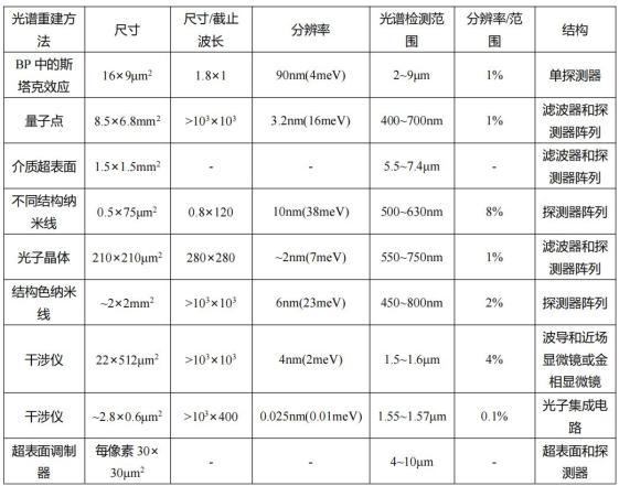 表1 该新型超微型光谱仪与其他微型光谱仪(典型)对比表源:Nature Photonics