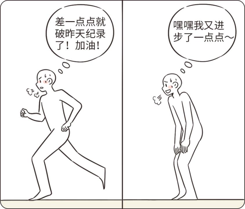 随着确切目标的设立,我发现自己的心态也发生了变化。跑步时我不再是“早死早超生”的消极想法,而是“我还差一点点就达成目标了”,跑步结束后,我也拥有了比过去更强烈的成就感。确立目标时,我们需要明确自己是否建立了与自我成长相关的目标,因为非自我成长相关的目标(比如,避免责罚、获得他人认可)很容易让多余信息分散我们的注意力,阻碍我们在这件事上投入充分的专注。
