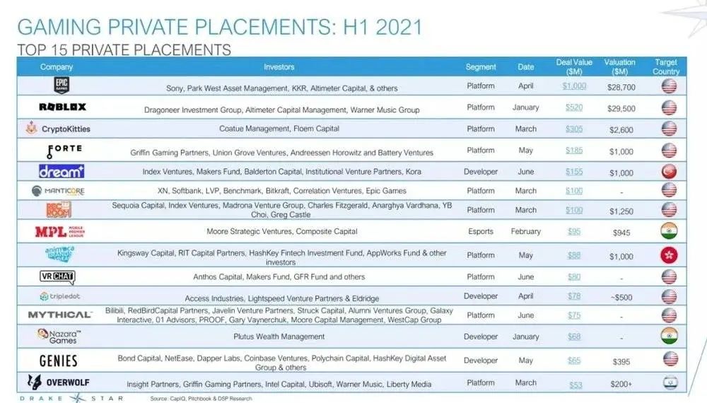 1. 产业端:2021上半年全球资本抢投游戏公司规模前所未有,赛道整体处于持续升温状态