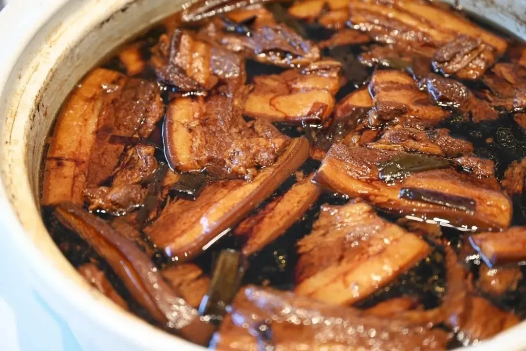 后来,隋朝时,鲁地的一位名厨,将此做法进行了完善,精选带皮猪肉,一斤切成数块,用麻绳捆成一把,浸在酱油之中,猛火开锅文火慢炖。