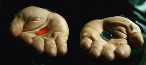 此时,我们和主角Neo一样,面前有两颗药丸:吃下蓝色药丸,可以在虚拟世界里一直“幸福”地生活;