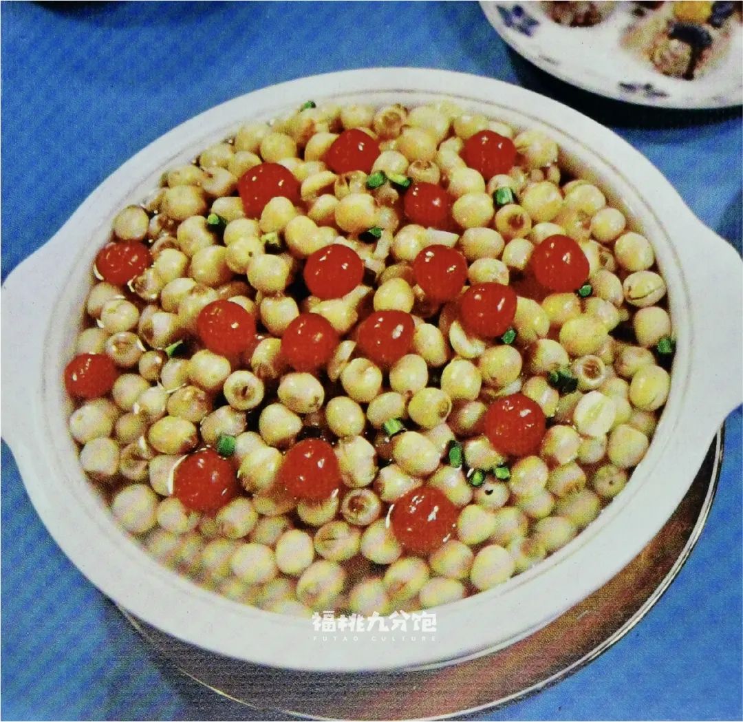 莲蓬虾茸,看起来像藕做的,实际是把虾茸放进小酒杯里安上莲子蒸熟,加鸡汤鸡油才好吃;