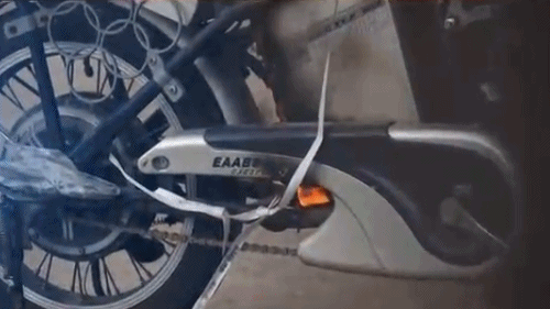 短路后电动车立刻产生明火,火焰温度为130℃。