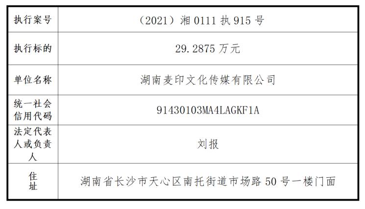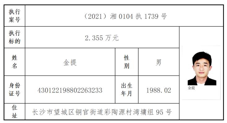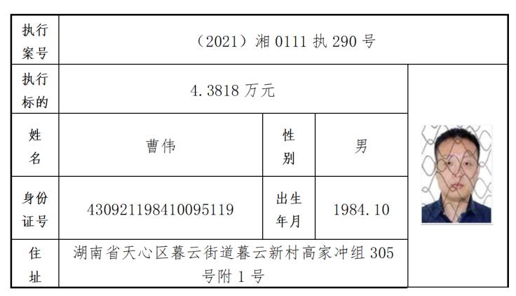 原标题:《曝光台!长沙法院2021年第二期失信被执行人名单》