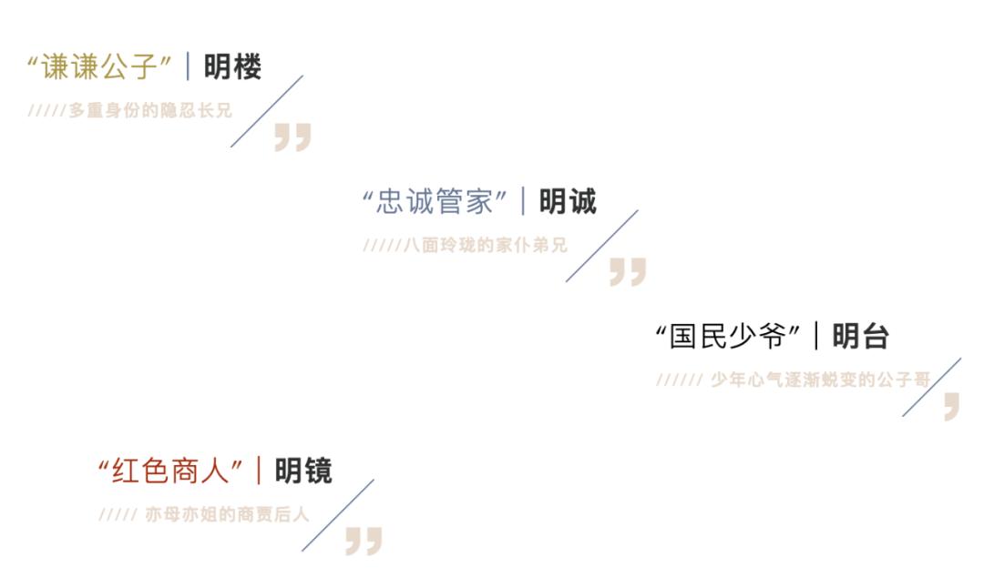 大姐明镜的扮演者朱芾是业界耳熟能详的演员,曾担任多部音乐剧中的重要角色,《近乎正常》、《狮子王》,《音乐之声》等作品中都有她的精彩表现;另一位明镜的饰演者徐梦则有音乐剧《美女与野兽》、《水曜日》等演出经历;舞台表演经历丰富,曾出演音乐剧《赵氏孤儿》、《小说》、《深夜食堂》等的黄冠菘则将饰演电视剧中曾给人留下深刻印象、亦正亦邪的角色王天风;除此以外,舞蹈专业出身、参演浸入式戏剧《不眠之夜》上海版、音乐剧《啊!鼓岭》多部剧作的申霓将饰演南田洋子。