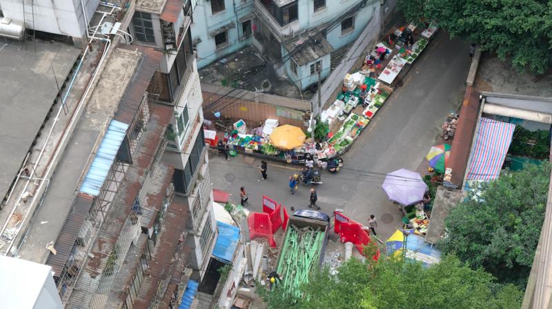 菜市场拆除后,摊贩们在周边当“走鬼”。图源:受访者然而,巷子里人流量稀少,新顾客不来,老顾客们也很难找到。为了更好地招揽生意,她急中生智,把摊子丢在巷子里,人走到巷子口,站在路边拉人,看到熟悉的人就喊:“叔叔,阿姨,要买豆腐吗?过来这边看看”。“ 我开玩笑说,自己都成‘站街女’了。”祁红艳苦笑着回忆。