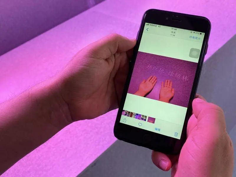 李波告诉全现在,他对“农林市场”的展览期待已久。当他在展厅亲眼看到摊主们的名字被郑重铭刻在水泥板上时,他感受到了一种“历史被凝聚的力量”。摊主们手的照片、营业执照、无字锦旗等也让他印象深刻。为了表达郑重的支持,他把自己的手摊平,放在刻有祁红艳名字的摊台水泥板前合影留念。