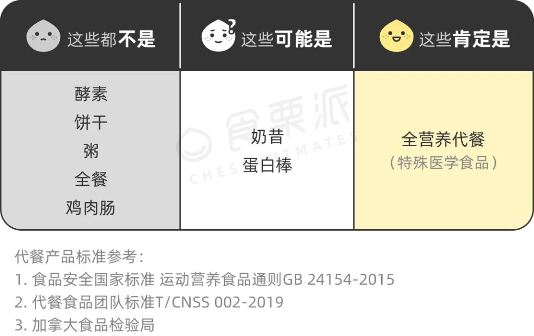 中国营养学会在2019年就发布了代餐食品的团体标准(以下简称《标准》),提供了比较专业的参考指导建议,你可以用它来衡量一下自己买的代餐。