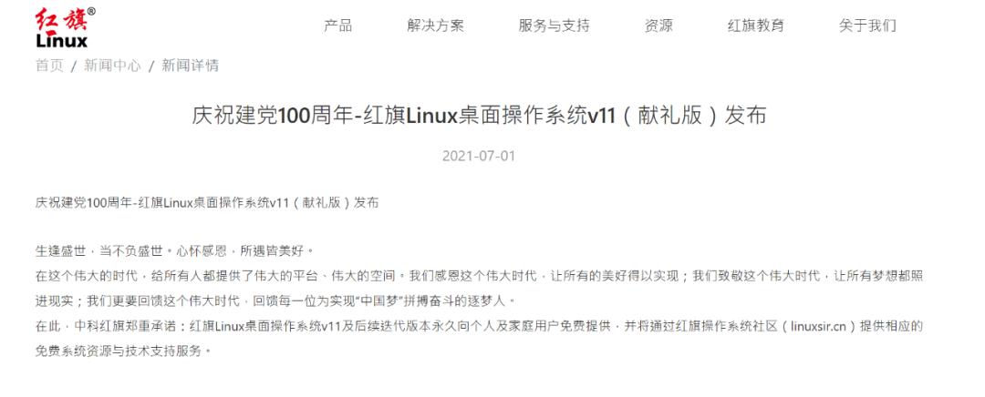 比如有一家叫红旗 OS 的国产系统,在前不久建党 100 周年,更新了一个建党百年的献礼版系统,并免费提供下载。