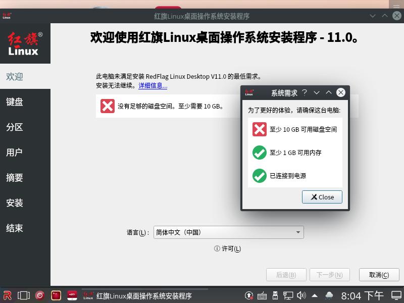 红旗 OS 对于电脑硬件的要求没有很高,最低只需要 1GB 的内存和 10GB 大小的储存。