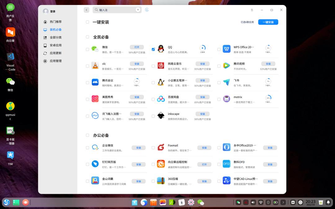 他们不但在系统里有自己的 Deepin 商店和原创应用,还能通过安卓容器来运行安卓应用,以此补缺 Linux 上没有的应用。甚至还帮你把 Wine 版的微信打包好了,