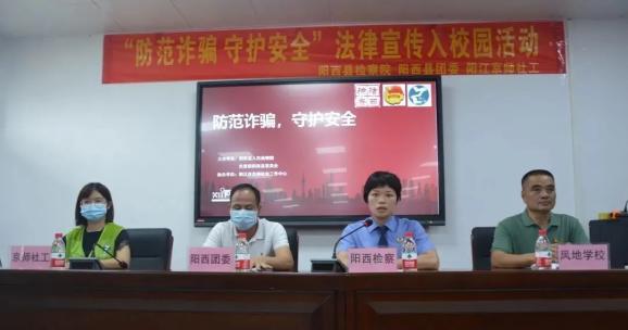 7月1日,阳春公安局四级警长梁斯彤到华南师范大学附属阳春学校开展安全法治课。阳西县