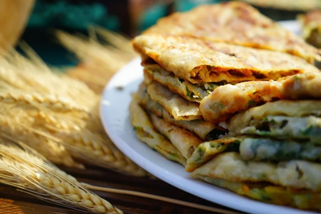 麦饼,大街上随处可见,以内裹馅料不同分为猪肉麦饼、土豆麦饼、咸菜冷饭麦饼、蛋肉麦饼等。其中蛋肉麦饼较为特别,最后一步会灌蛋液,等鸡蛋在里面凝固,趁热咬一口,喷香鲜软,人间值得。扁食