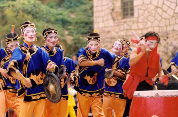大奏鼓,源于福建,流传于温岭石塘,舞蹈动作粗犷而诙谐,舞者男扮女装,独具地方特色。2008年,被列入国家级非遗名录,被《中国民间舞蹈集成大全》誉为中国渔村第一舞。幸福