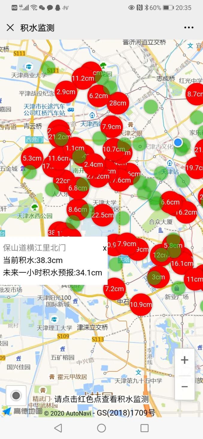 您可关注“天津天气”微信公众号,进入“社区吧-积水监测”查询城区各地积水及预测产品(链接https://tianjin.welife100.com/Index/jishui),合理安排出行。