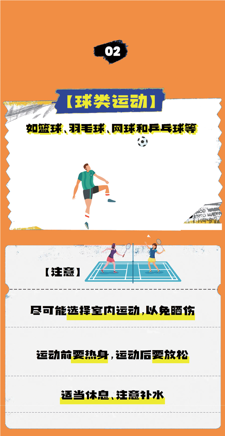 耐热能力较差、患有疾病者不宜在热环境中过度运动,以免中暑。