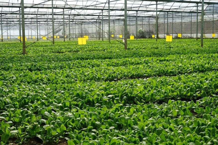 ▲现代智能温室玻璃大棚内种植的活体蔬菜 2021年4月