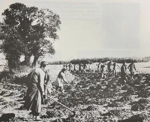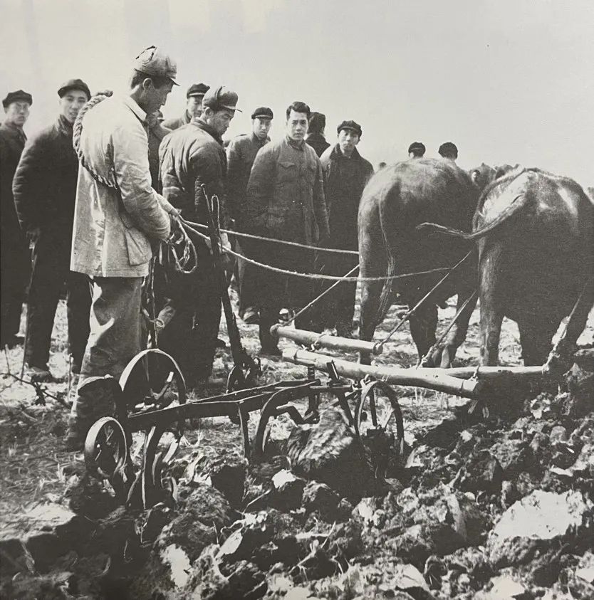 ▲解放初期上海西郊区农民使用原始农具进行农耕。20世纪50年代