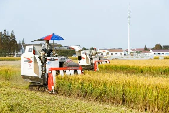 ▲地产国庆早稻进行机械化开镰收割。2020年9月12日
