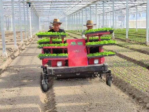 ▲闵行区蔬菜定植环节开始实现机器代替人力。2020年4月