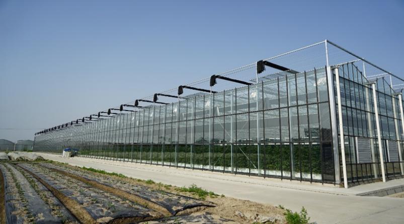 ▲现代智慧温室玻璃大棚,实现蔬菜生产环境可查可控和反季供应。2020年9月