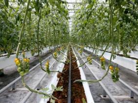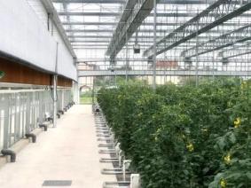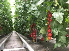 ▲现代智能温室玻璃大棚内种植的樱桃番茄,产量显著提升。2020年4月four
