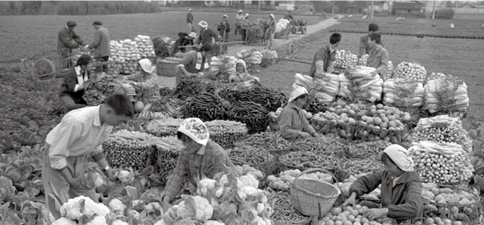 ▲上海县龙华人民公社龙华大队第四生产队大力发展蔬菜生产,增加花色品种,保证市场供应。1974年10月26日从建国至今一路走来,闵行区农业经历了从农林牧副渔多业态到以生态、绿色为导向的融合业态的转变。近年来,闵行区为解决耕地面积小、分布散的现状,整合具有市场优势和生产优势的企业,建立起稻米、蔬菜两个产业联盟,打造“闵田悦禾”“闵鲜青蔬”两个区域公共品牌,带领广大农业生产经营主体进入产业发展快车道。