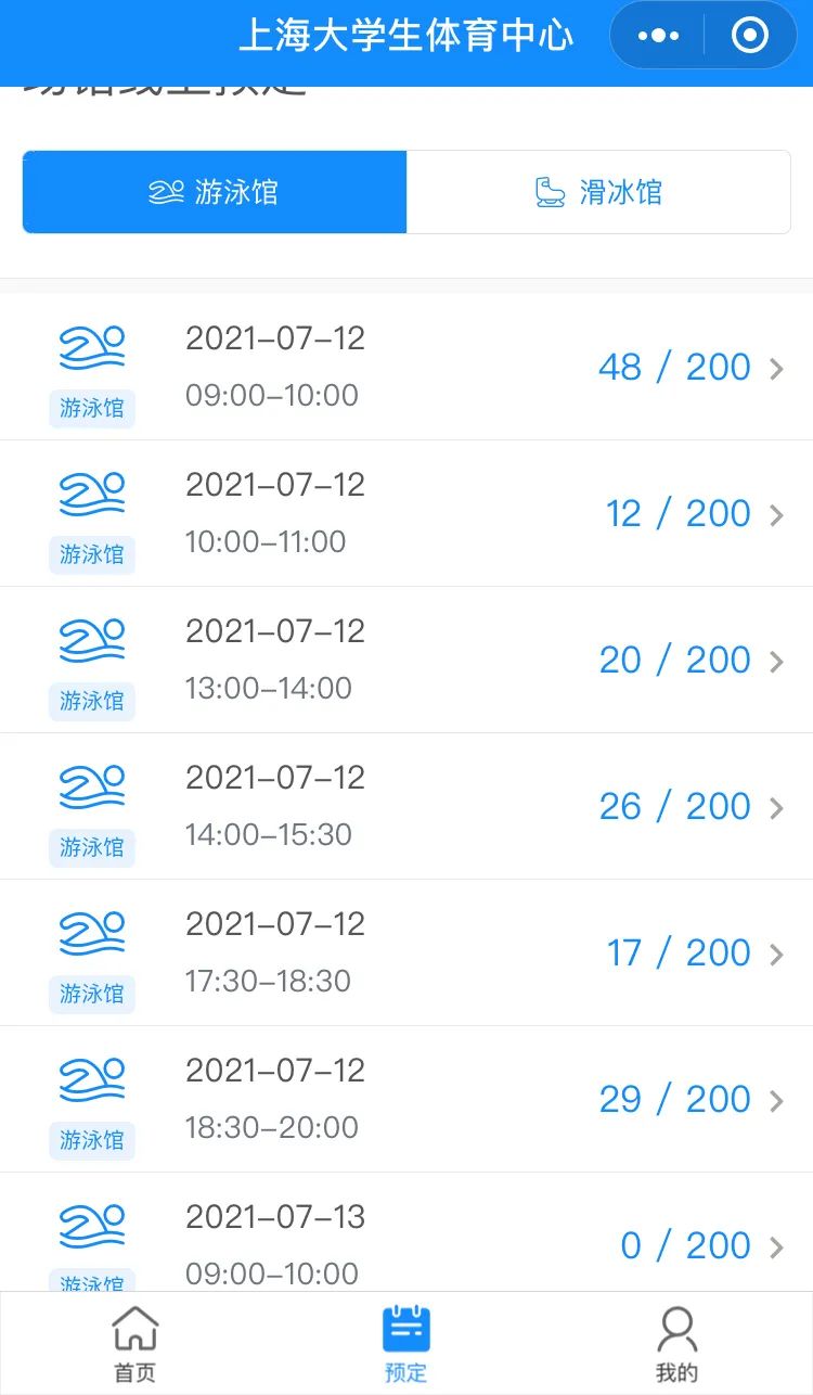 除此之外,所有来游泳馆锻炼的泳客需提前至“上海大学生体育中心”微信公众号进行相关场馆时段预约(同时在场人数上限200人),预约信息(姓名、性别等)必须与本人“随申码”相符。