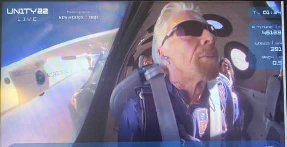 中国小康网讯 太空旅游公司“维珍银河”(Virgin Galactic)71岁的创始人理查德·布兰森(Richard Branson)于美国时间7月11日上午10点半乘坐维珍银河旗下的“VSS Unity”太空飞机,从新墨西哥州的Spaceport America太空港出发,飞往太空。