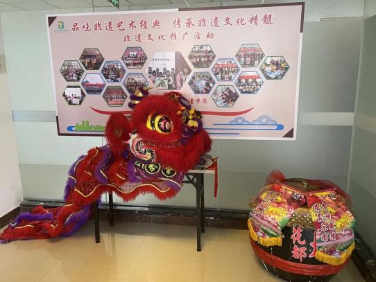▲贝雅国际文化传播(广州)有限公司醒狮展示角除建立面塑社团、客家山歌社团以及醒狮社团外,贝雅国际教育还开展了诸如扎染,造纸术,剪纸等一系列非遗特色课程,使中国优秀传统文化进一步得到继承和弘扬。