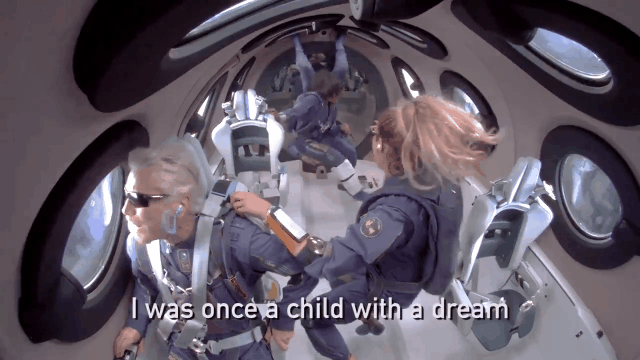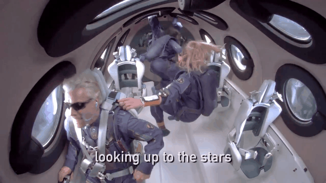 于是,包括布兰森在内的三位乘客,在86km的“太空”上经历了4分钟失重: