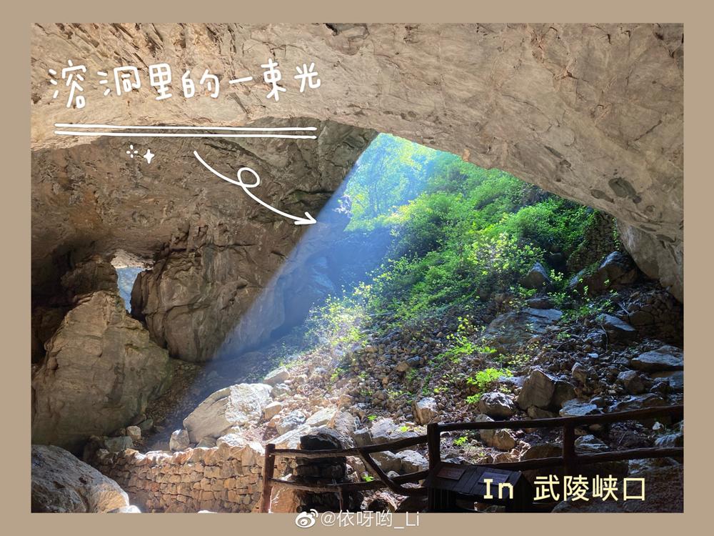 武陵峡口是一处集原始生态峡谷景观、农耕体验、温泉养生、洞穴探险为一体的综合休闲地。峡谷及官道全长5公里,均为独特的喀斯特地貌,里面有暗河、水潭、溶洞、岩坑,别有洞天。值得一提的是,武陵峡一峡连四洞,洞洞相连,各有其景。