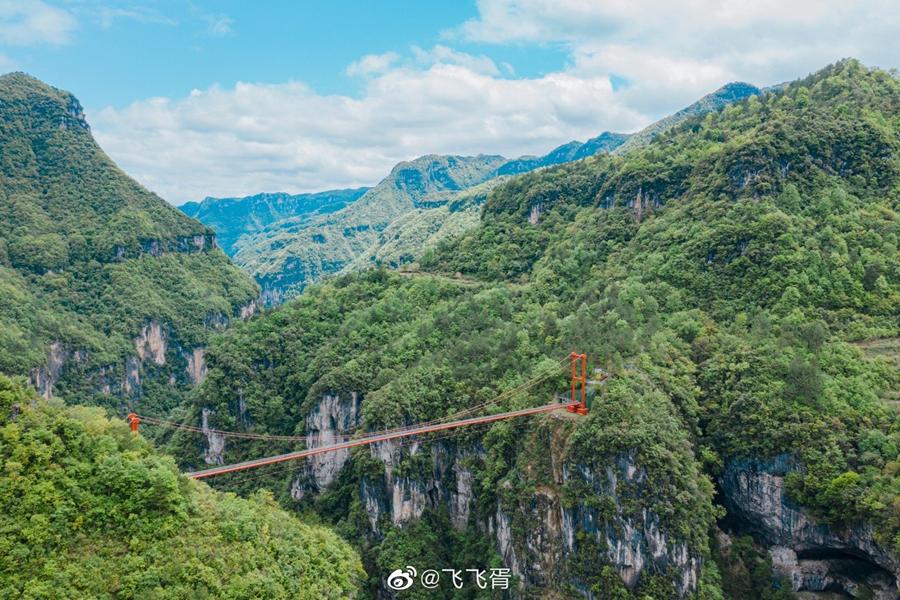 这条悬崖索桥全长220米、高230米,相当于70层楼高。中间有段12米长的玻璃栈道,惊险又刺激,站在桥上就能领略到象鼻山风貌,将两岸风光尽收眼底,大美子!