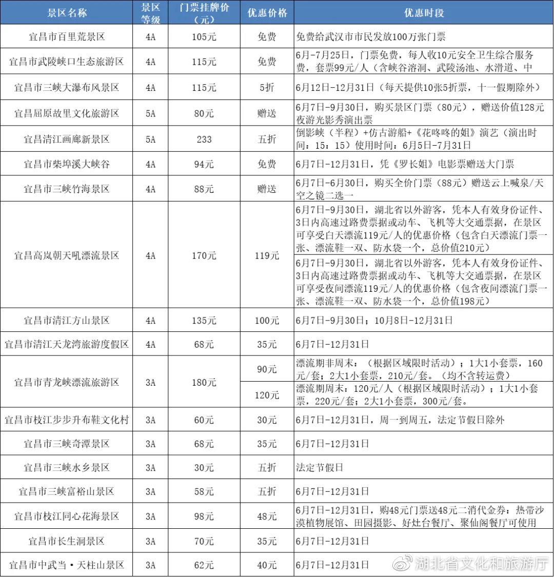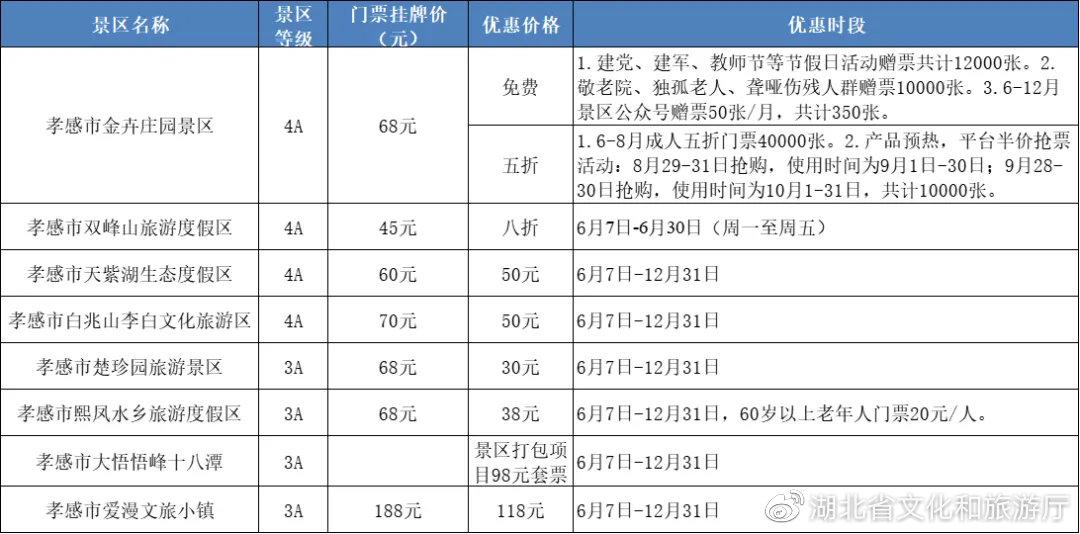 部分综合自:湖北省文化和旅游厅、湖北日报、各大景区等