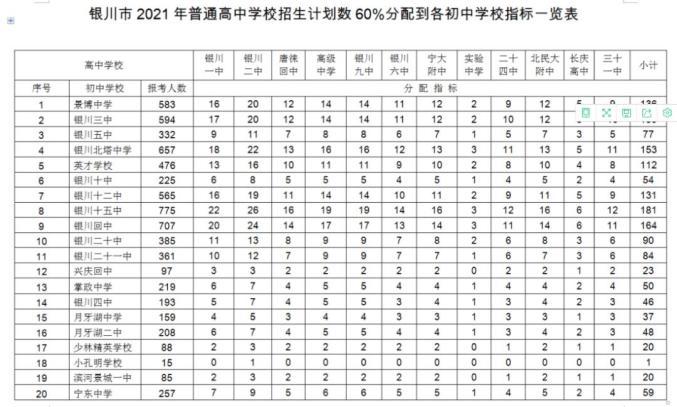 原标题:《“指标到校”3752人!银川三区公办高中招生计划出炉!》