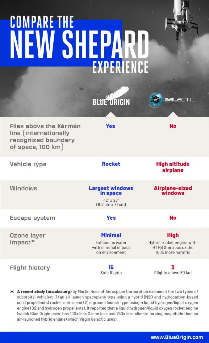 在祝贺这次飞行成功、向这位极富个性的勇敢者致敬的同时,也有人对于布兰森的首次太空飞行稍有微词,如世界首富、亚马逊公司创始人杰夫‧贝索斯,认为布兰森之飞的高度稍低了些,并未达到真正的太空飞行。贝索斯创办的蓝色起源公司也正在此领域大展手脚,他们研发的新谢波德火箭经历了十数次试验,很快就要在几天后载客试飞,设计飞行高度为100km。