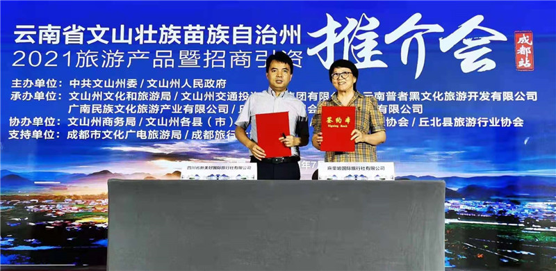 7月13日,“文山州2021年旅游产品暨招商引资推介会”在成都举行。本次推介会依托当前旅游形势和航空市场需求,着重推介了文山州优势旅游资源,加强与成都旅游业界的推广和营销合作。
