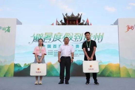 多彩贵州网有限责任公司党委副书记、总编辑张云泓为媒体代表发放慰问药品和应急救护箱南海网记者王全印代表媒体行记者团表态。他认为本次活动让记者们有了亲眼见证贵州沧桑巨变和跨越赶超的机会,感到非常荣幸和骄傲。王全印说,接下来的几天,记者们将全力配合,仔细体验,认真感悟,全力做好报道工作。