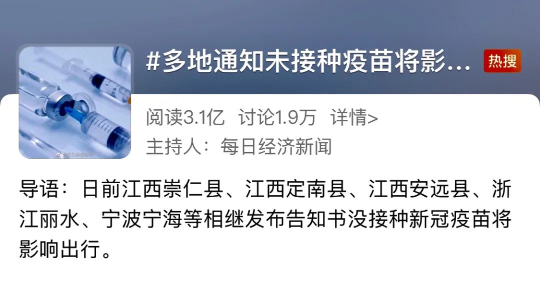 多地通知未接种疫苗将影响出行,媒体:再迫切也不该搞变相强迫