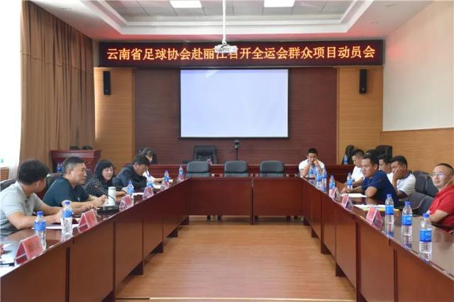 经前期动员、报名和甄选,丽江市玉龙县黄山镇代表队、宁蒗县大兴街道代表队、开远市乐百道街道代表队脱颖而出,将代表云南参加第十四届全国运动会群众项目足球比赛。三支球队的62名运动员、15名教练组成员全部来自基层,由地方业余足球爱好者组成,三支球队中就有两支球队来自丽江。为了让选手更好的备战比赛,昨天(7月12日),云南省足球协会主席常林、常务副主席葛新一行,看望即将代表云南省参加全国第十四届运动会群众足球项目比赛的两支丽江本土足球队伍。并到市体育发展中心观看队伍训练,提出意见,指导训练。