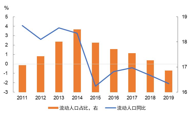 数据来源:国家统计局图3 流动人口占比和流动人口同比变化