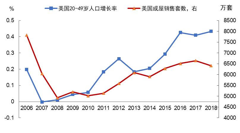 图5 美国成屋销售套数和购房年龄群体规模变化情况