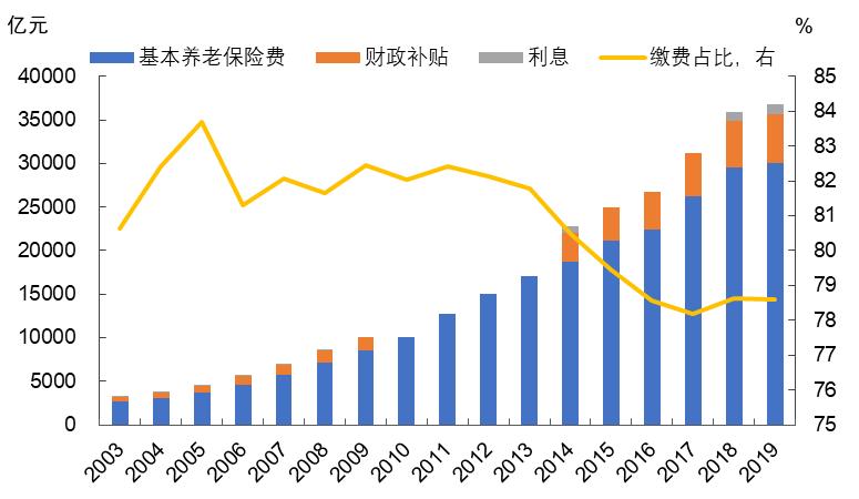 图6 基本养老保险费在养老保险收入中所占比重