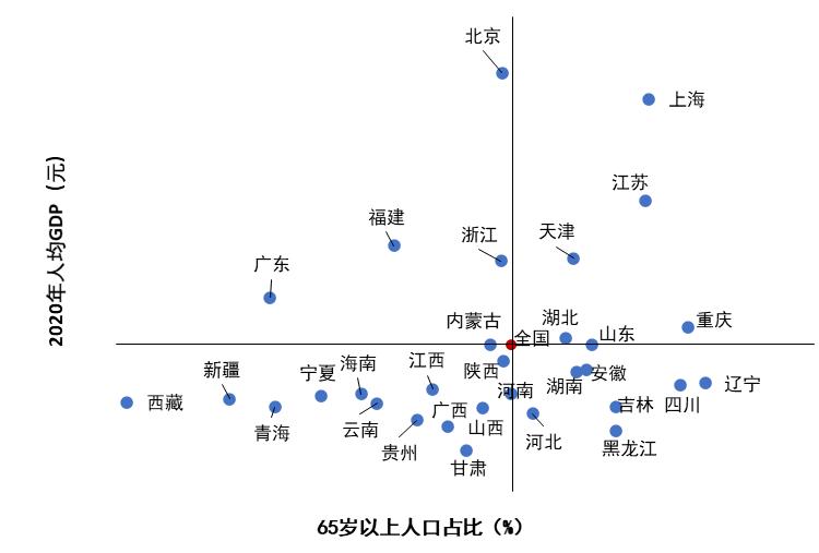 数据来源:财政部图8 各省份老龄人口占比和人均GDP分布情况